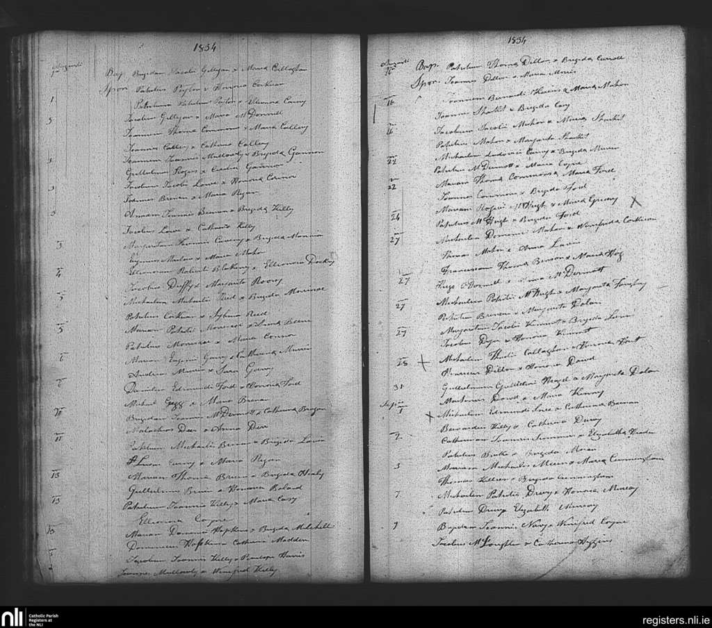 Tibohine; County of Roscommon; Diocese of Elphin. Baptisms, Aug. 1834 to Sep. 1834