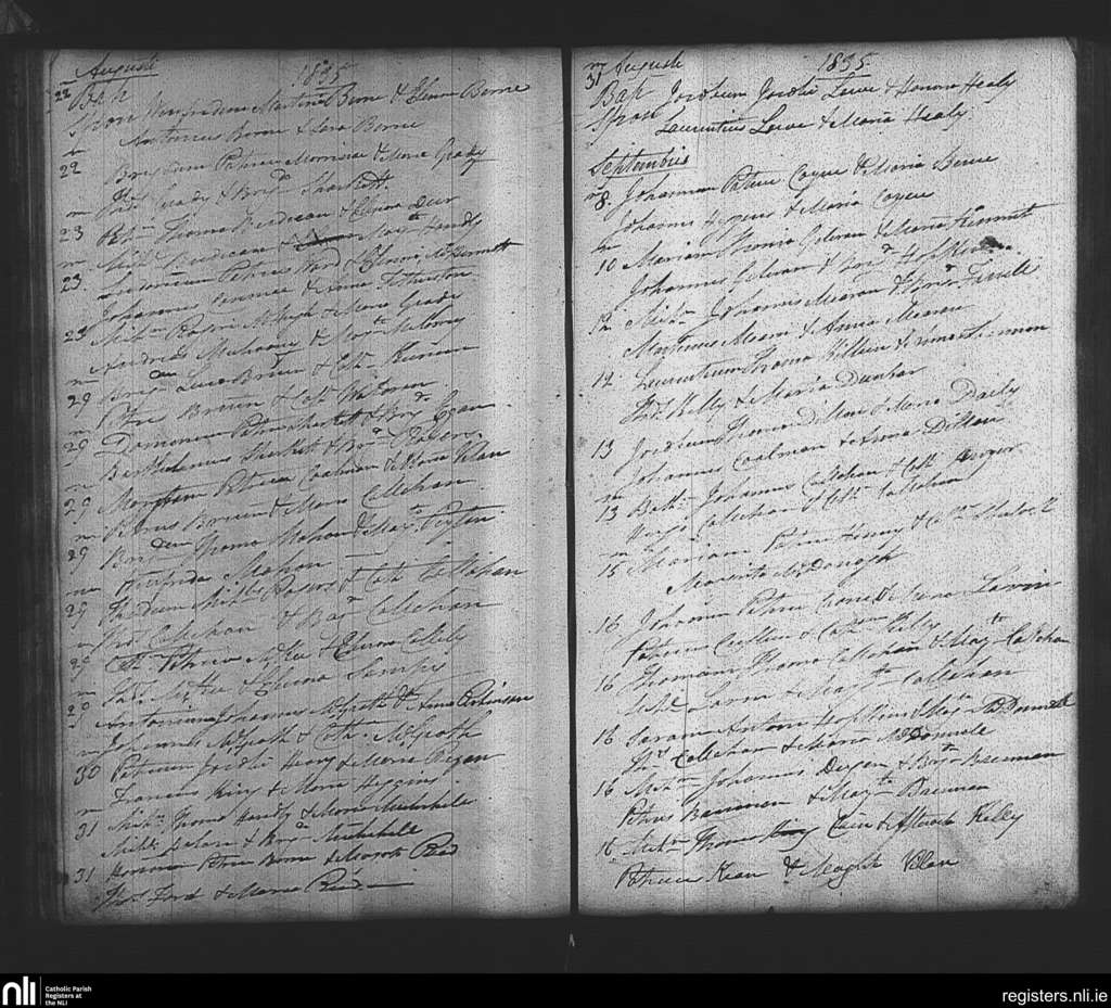 Tibohine; County of Roscommon; Diocese of Elphin. Baptisms, Aug. 1835 to Sep. 1835