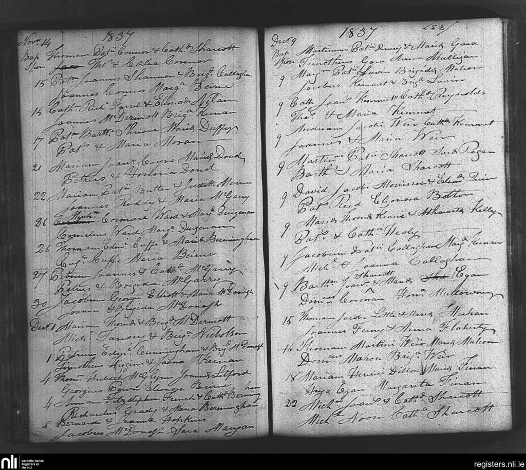 Tibohine; County of Roscommon; Diocese of Elphin. Baptisms, Nov. 1837 to Dec. 1837