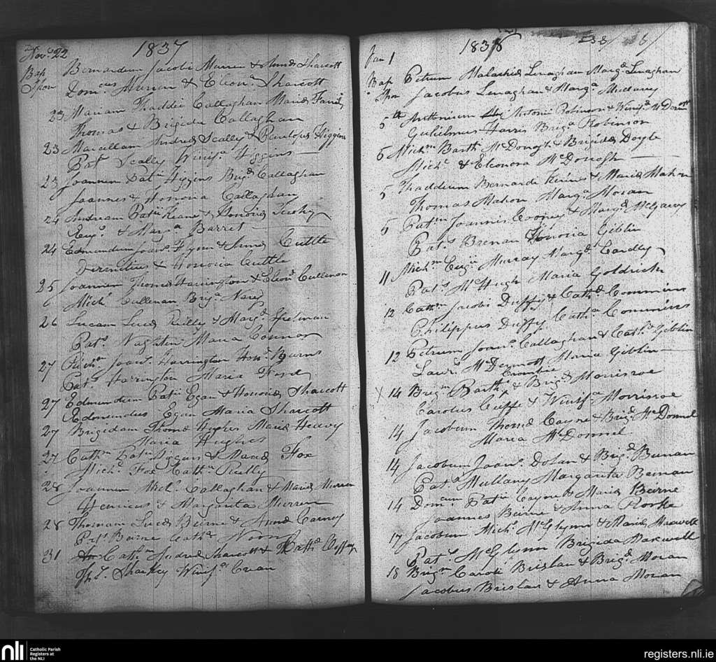Tibohine; County of Roscommon; Diocese of Elphin. Baptisms, Dec. 1837 to Jan. 1838