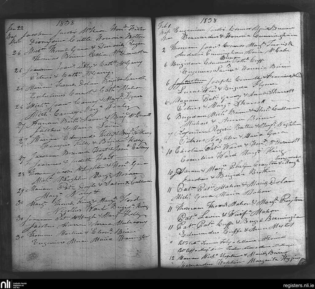 Tibohine; County of Roscommon; Diocese of Elphin. Baptisms, Jan. 1838 to Feb. 1838