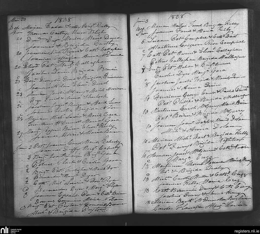 Tibohine; County of Roscommon; Diocese of Elphin. Baptisms, May 1838 to June 1838