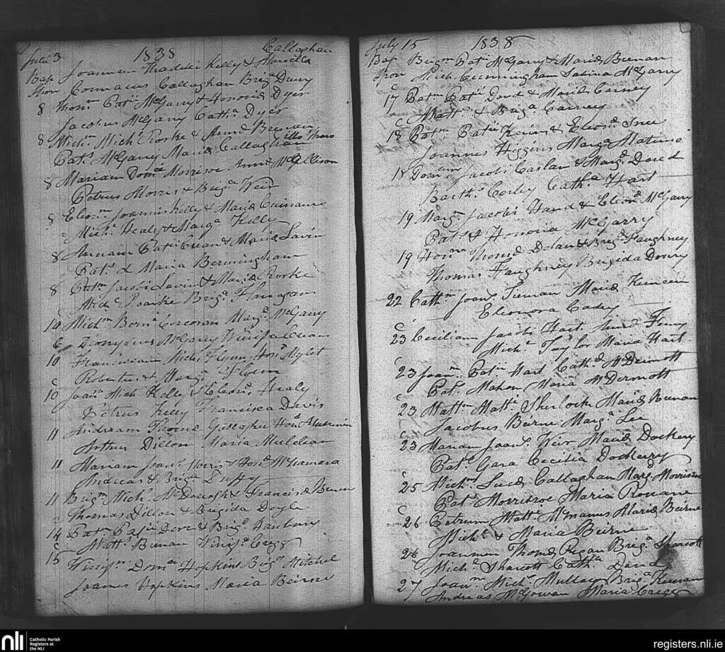 Tibohine; County of Roscommon; Diocese of Elphin. Baptisms, July 1838