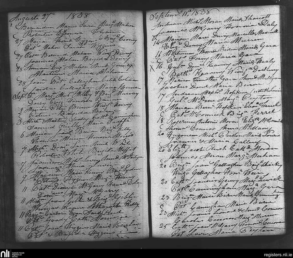 Tibohine; County of Roscommon; Diocese of Elphin. Baptisms, Aug. 1838 to Sep. 1838