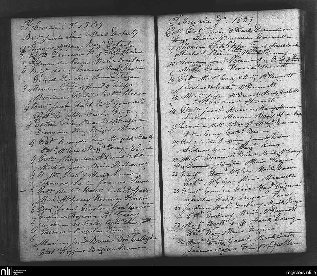 Tibohine; County of Roscommon; Diocese of Elphin. Baptisms, Feb. 1839