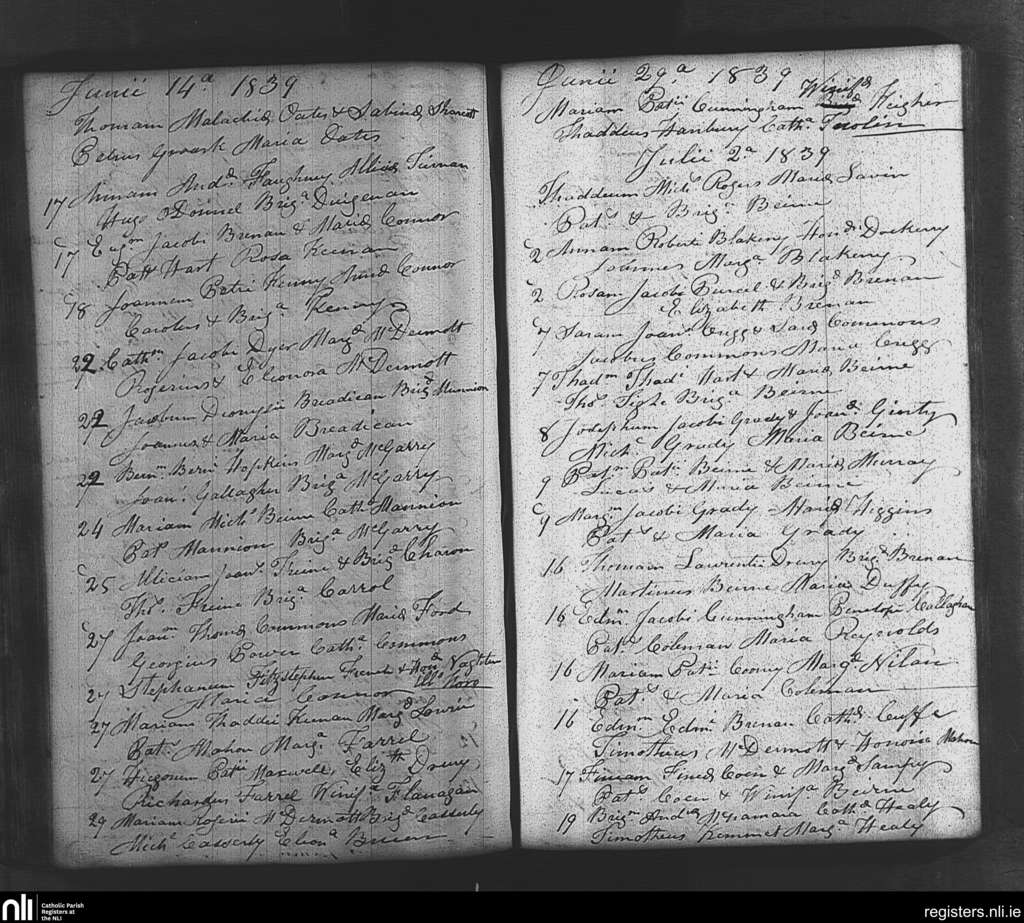 Tibohine; County of Roscommon; Diocese of Elphin. Baptisms, June 1839 to July 1839
