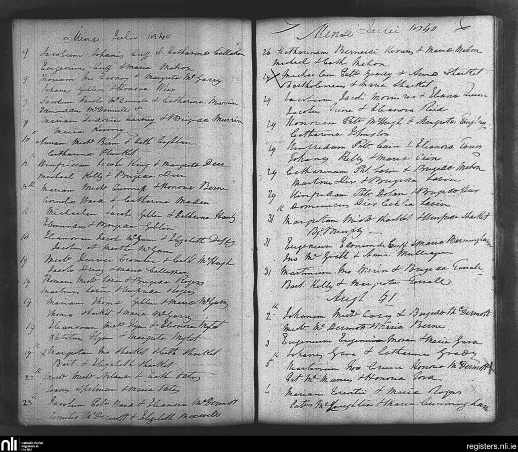 Tibohine; County of Roscommon; Diocese of Elphin. Baptisms, July 1840 to Aug. 1840