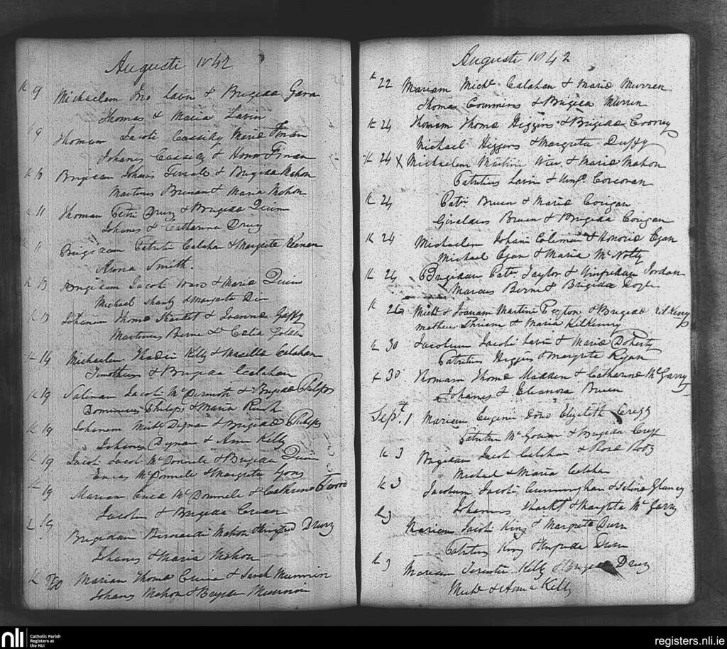 Tibohine; County of Roscommon; Diocese of Elphin. Baptisms, Aug. 1842 to Sep. 1842