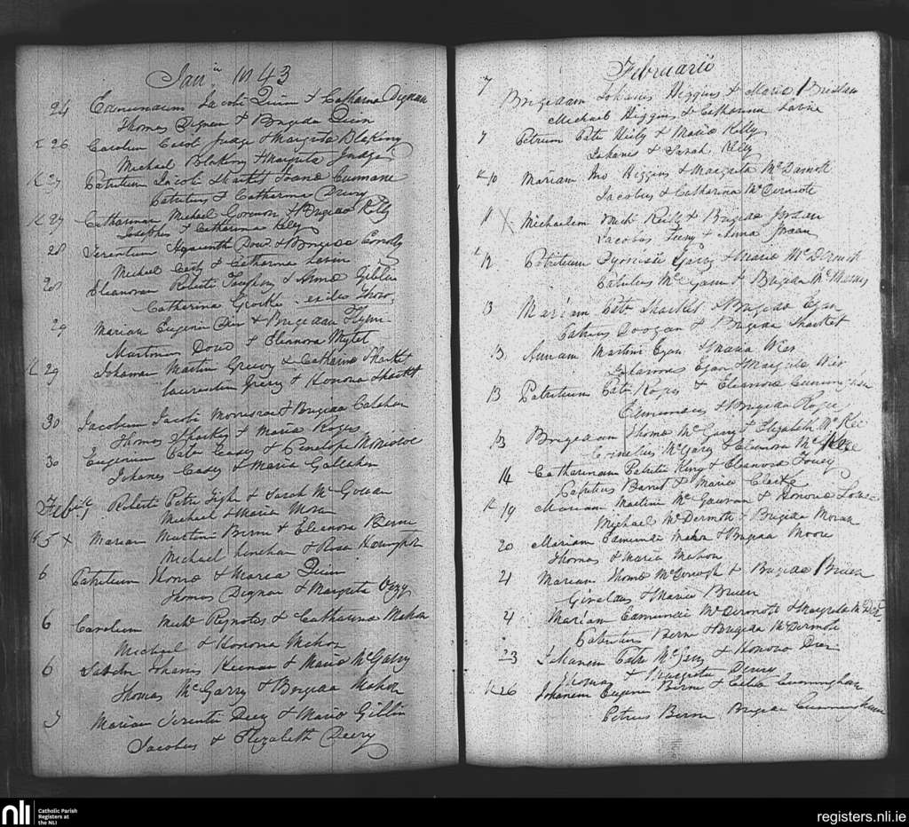 Tibohine; County of Roscommon; Diocese of Elphin. Baptisms, Jan. 1843 to Feb. 1843