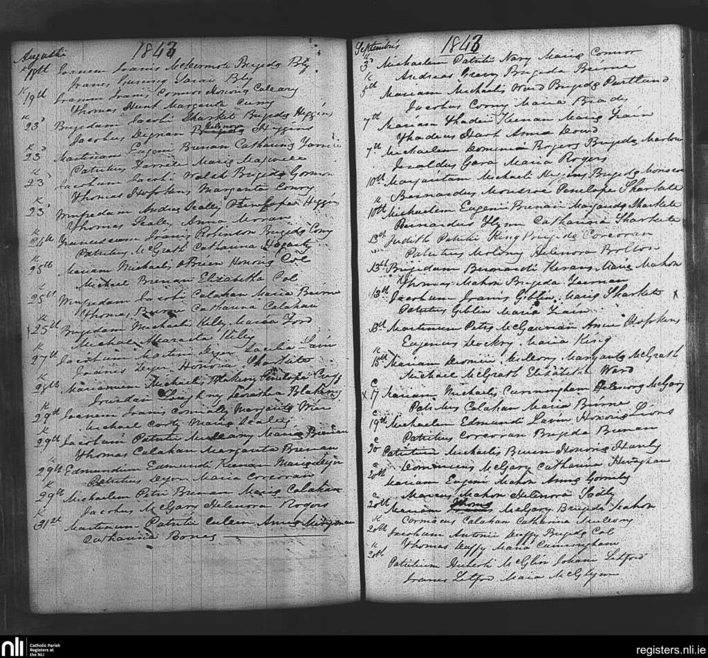 Tibohine; County of Roscommon; Diocese of Elphin. Baptisms, Aug. 1843 to Sep. 1843