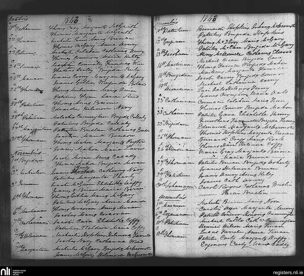 Tibohine; County of Roscommon; Diocese of Elphin. Baptisms, Oct. 1843 to Dec. 1843