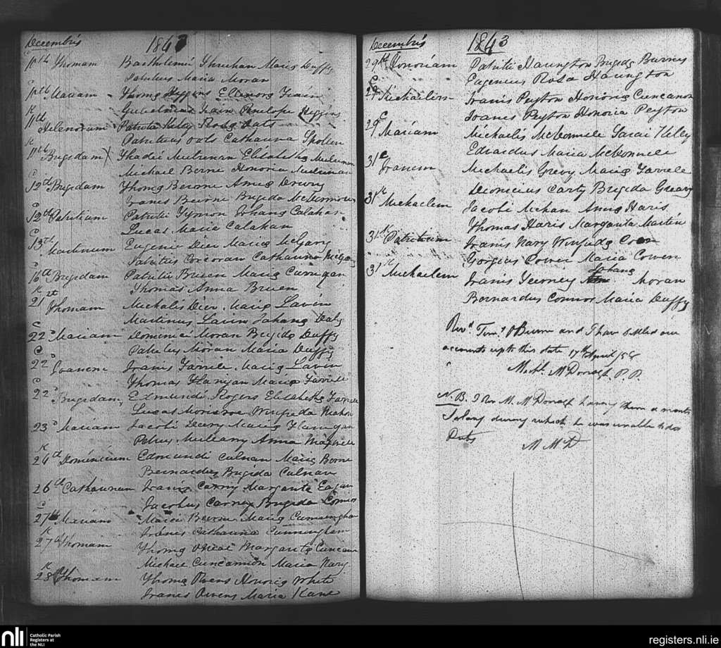 Tibohine; County of Roscommon; Diocese of Elphin. Baptisms, Dec. 1843