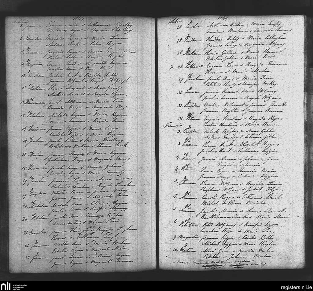 Tibohine; County of Roscommon; Diocese of Elphin. Baptisms, Oct. 1844 to Nov. 1844