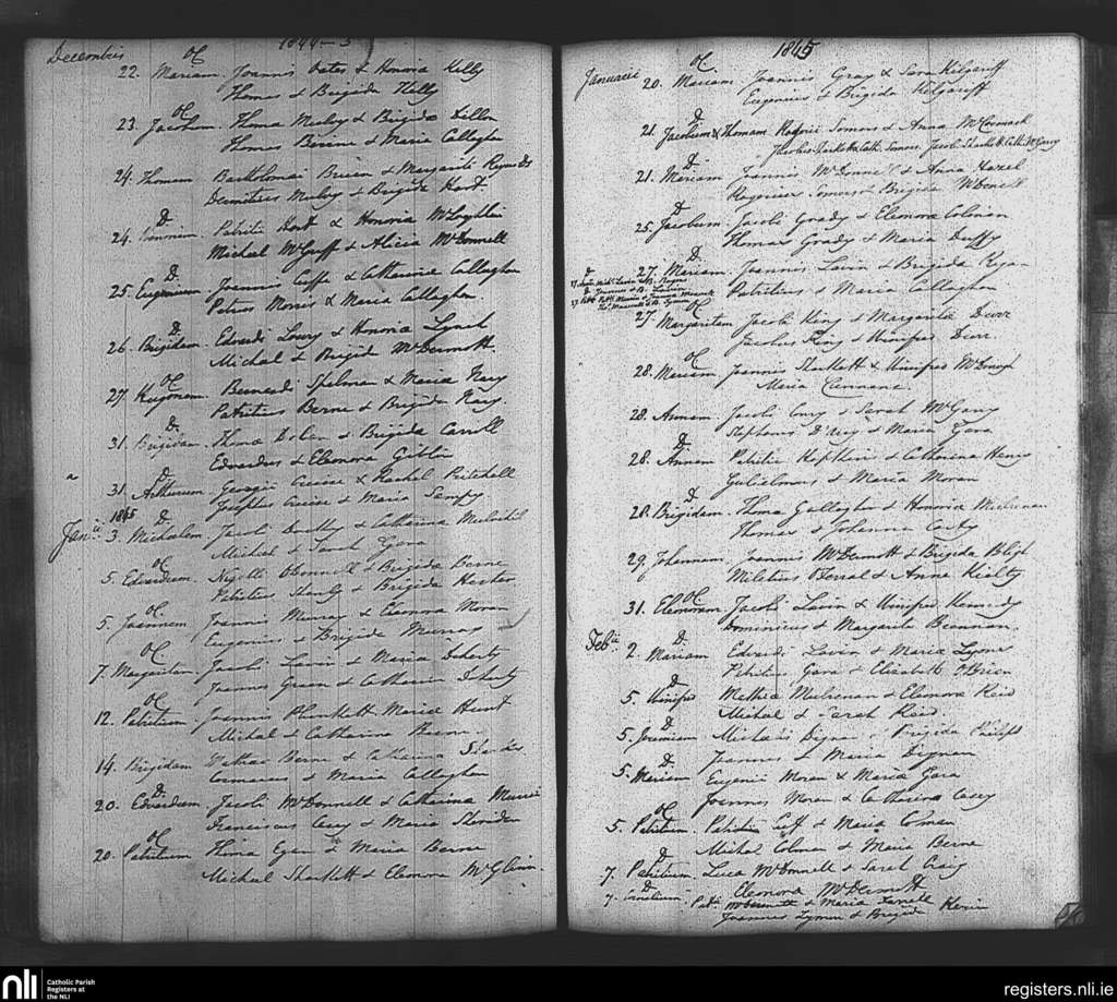 Tibohine; County of Roscommon; Diocese of Elphin. Baptisms, Dec. 1844 to Feb. 1845