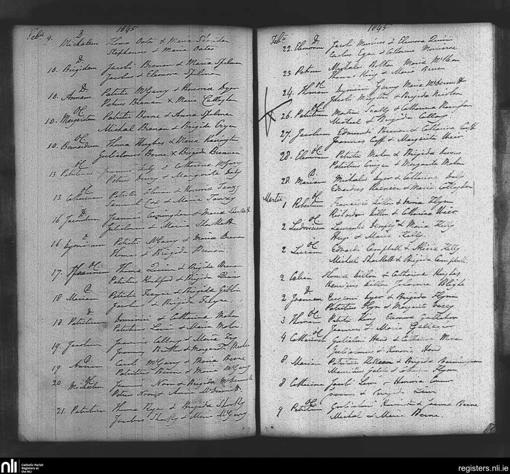 Tibohine; County of Roscommon; Diocese of Elphin. Baptisms, Feb. 1845 to Mar. 1845