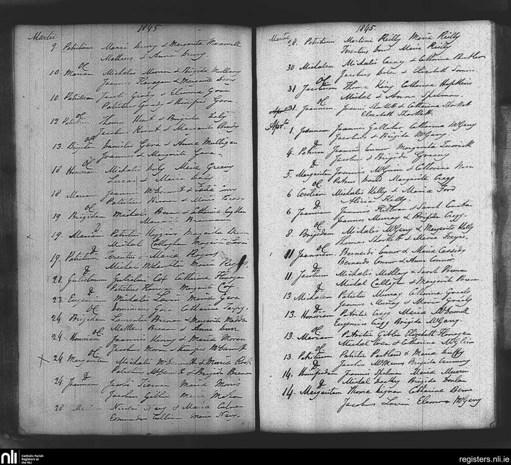 Tibohine; County of Roscommon; Diocese of Elphin. Baptisms, Mar. 1845 to Apr. 1845