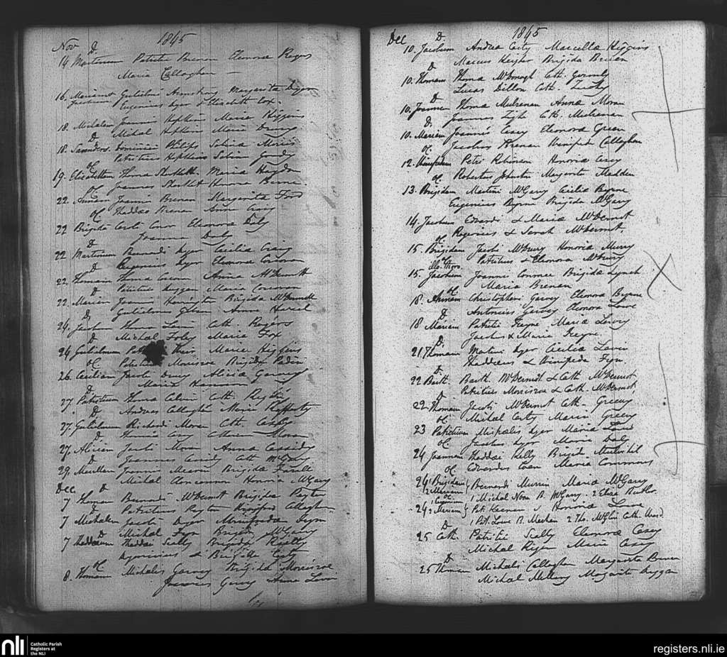 Tibohine; County of Roscommon; Diocese of Elphin. Baptisms, Nov. 1845 to Dec. 1845