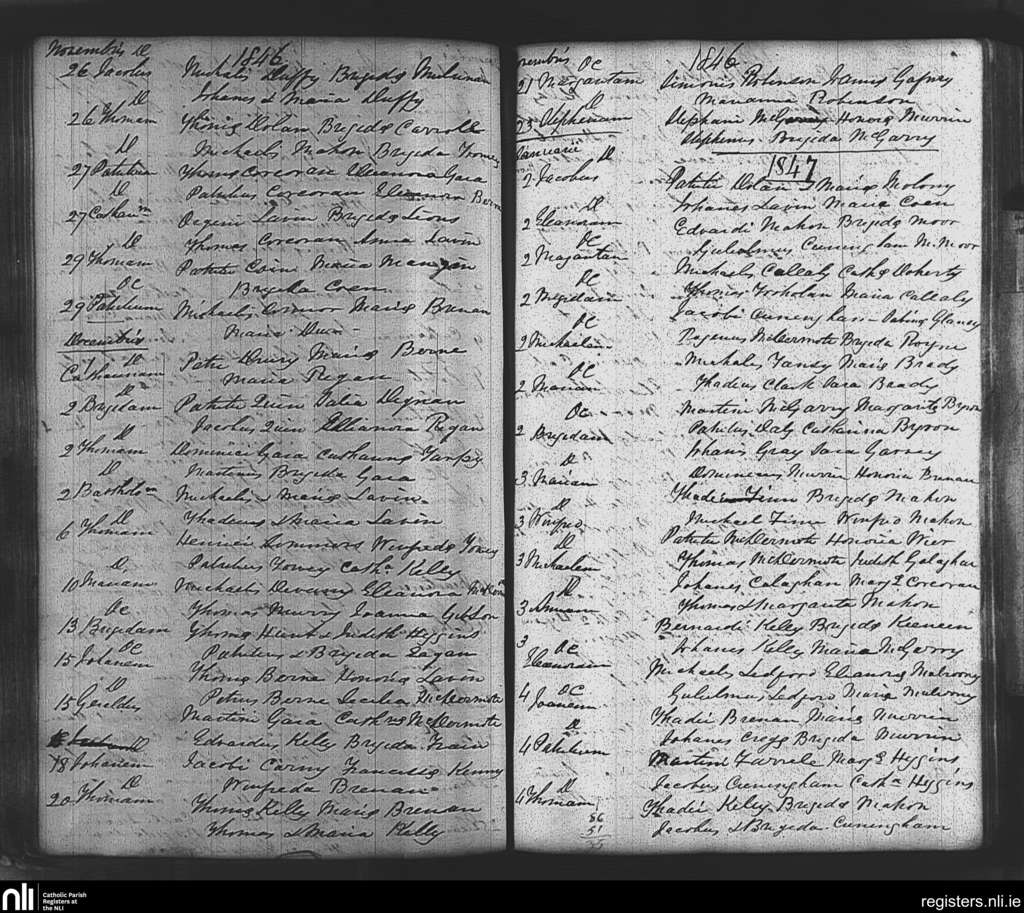 Tibohine; County of Roscommon; Diocese of Elphin. Baptisms, Nov. 1846 to Jan. 1847