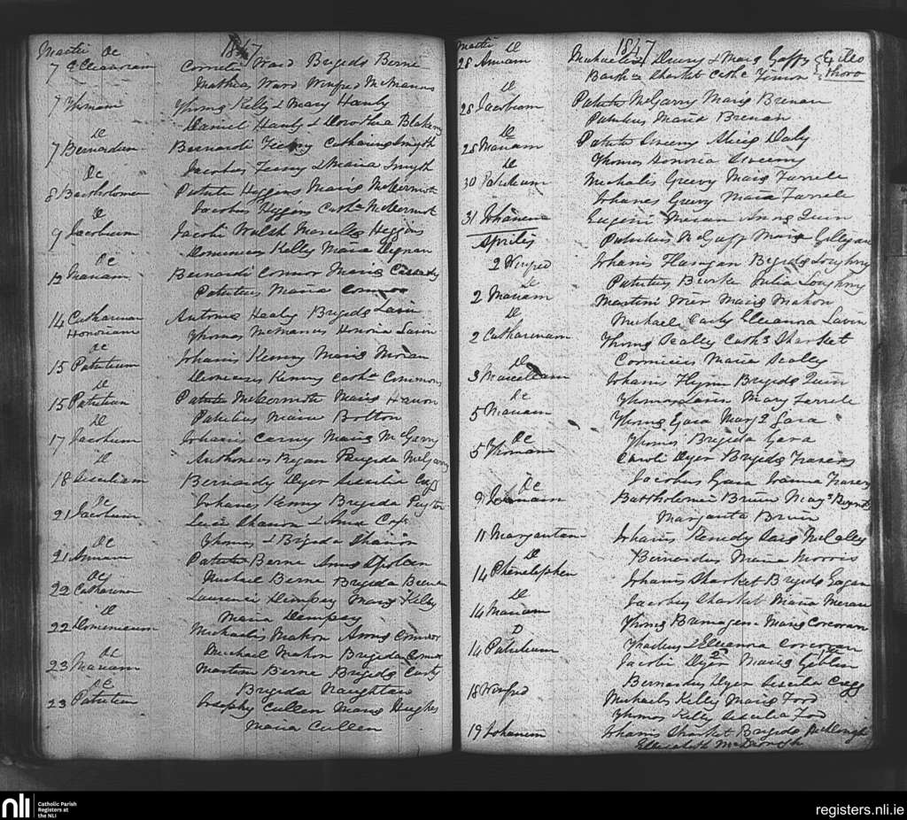 Tibohine; County of Roscommon; Diocese of Elphin. Baptisms, Mar. 1847 to Apr. 1847