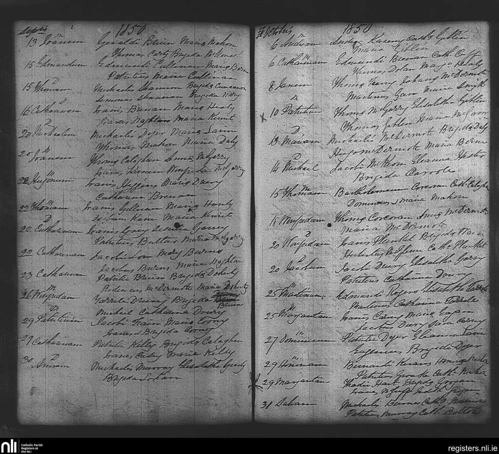 Tibohine; County of Roscommon; Diocese of Elphin. Baptisms, Sep. 1850 to Oct. 1850