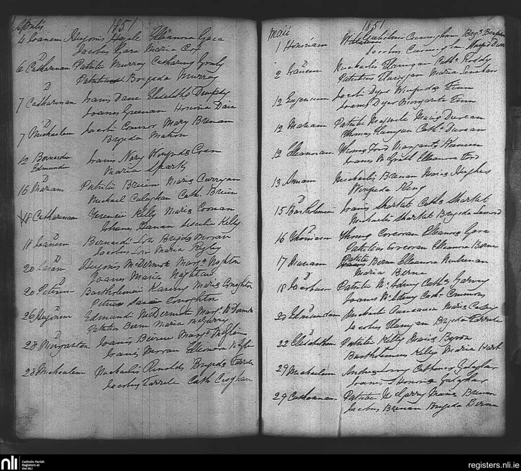 Tibohine; County of Roscommon; Diocese of Elphin. Baptisms, Apr. 1851 to May 1851