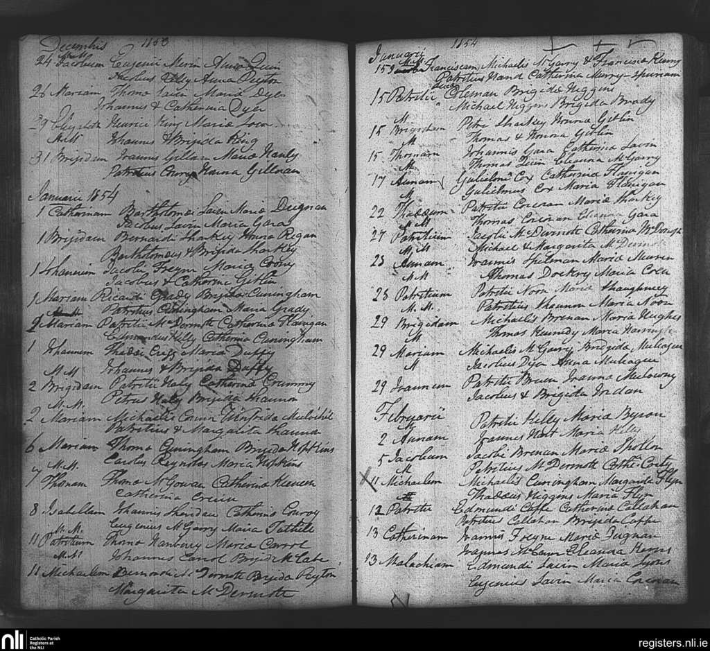Tibohine; County of Roscommon; Diocese of Elphin. Baptisms, Dec. 1853 to Feb. 1854