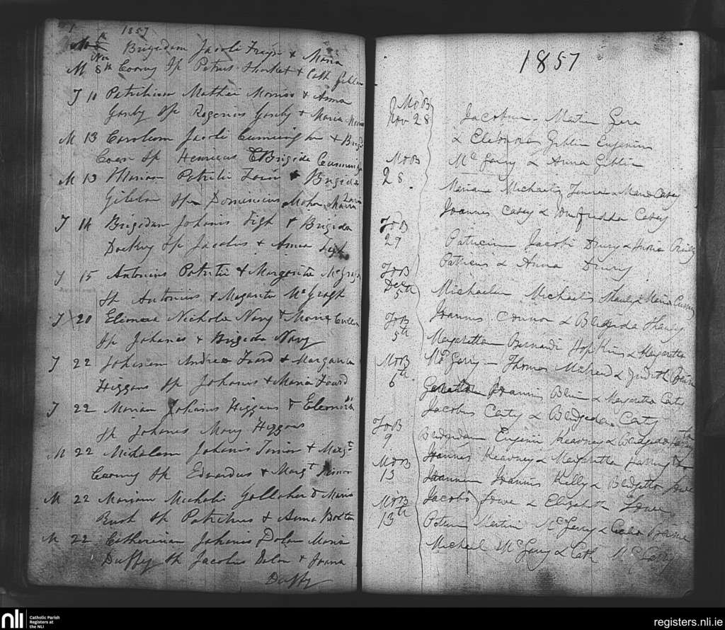 Tibohine; County of Roscommon; Diocese of Elphin. Baptisms, Nov. 1857 to Dec. 1857