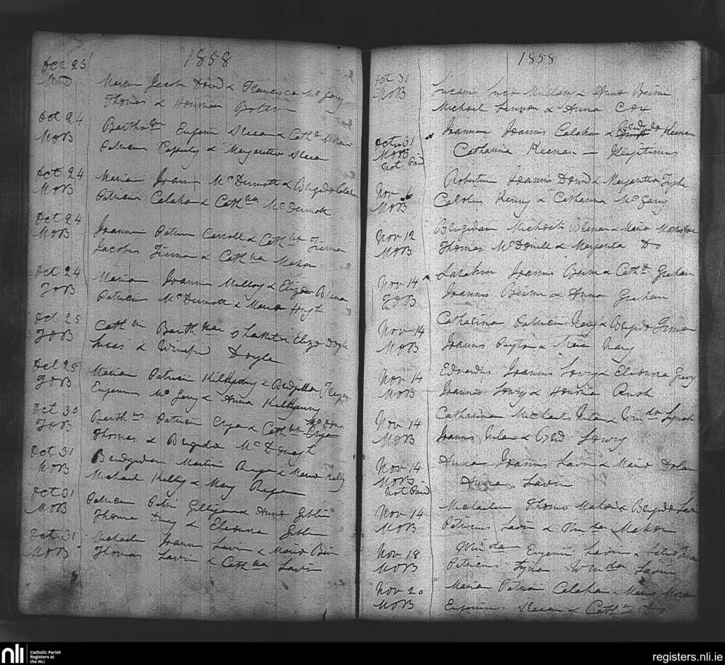 Tibohine; County of Roscommon; Diocese of Elphin. Baptisms, Oct. 1858 to Nov. 1858