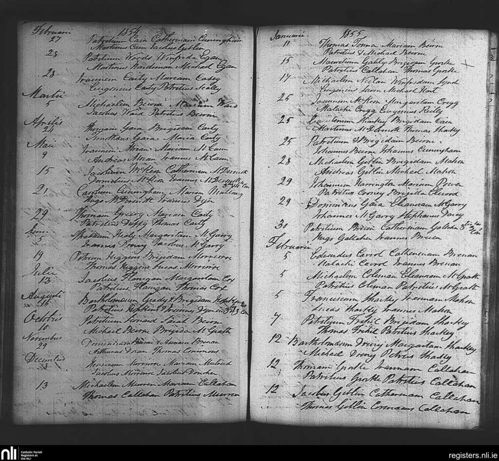 Tibohine; County of Roscommon; Diocese of Elphin. Marriages, Feb. 1854 to Feb. 1855