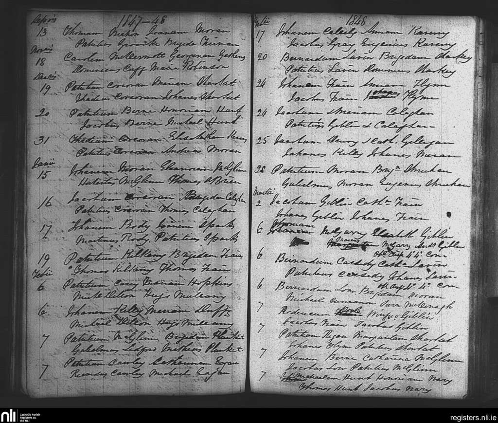 Tibohine; County of Roscommon; Diocese of Elphin. Marriages, Sep. 1847 to Mar. 1848