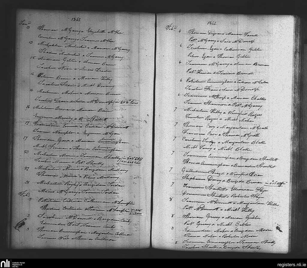 Tibohine; County of Roscommon; Diocese of Elphin. Marriages, Jan. 1842 to Feb. 1842