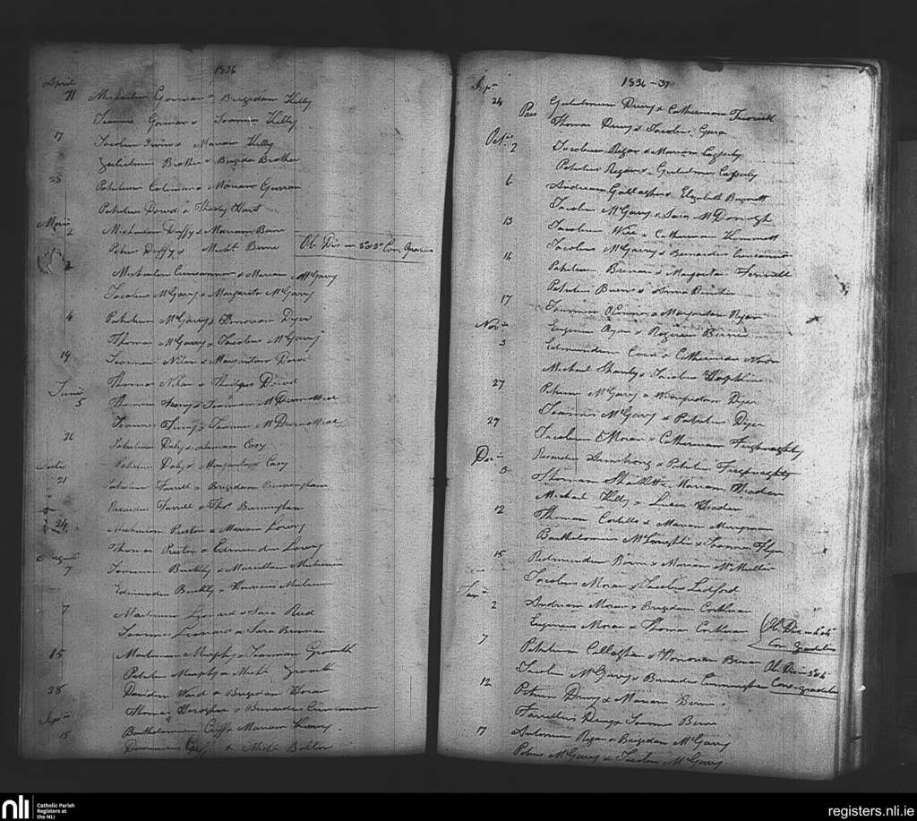 Tibohine; County of Roscommon; Diocese of Elphin. Marriages, Apr. 1836 to Jan. 1837