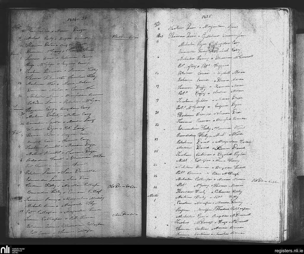 Tibohine; County of Roscommon; Diocese of Elphin. Marriages, Nov. 1834 to Mar. 1835