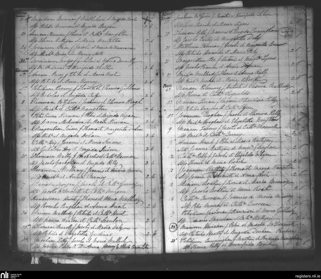 Kilbride; County of Roscommon; Diocese of Elphin. Baptisms, Jan. 1846 to Mar. 1846