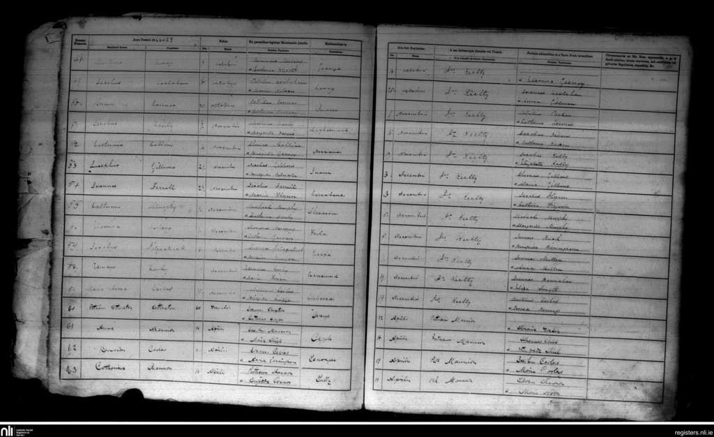 Kilbride; County of Roscommon; Diocese of Elphin. Baptisms, Oct. 1868 to Apr. 1869