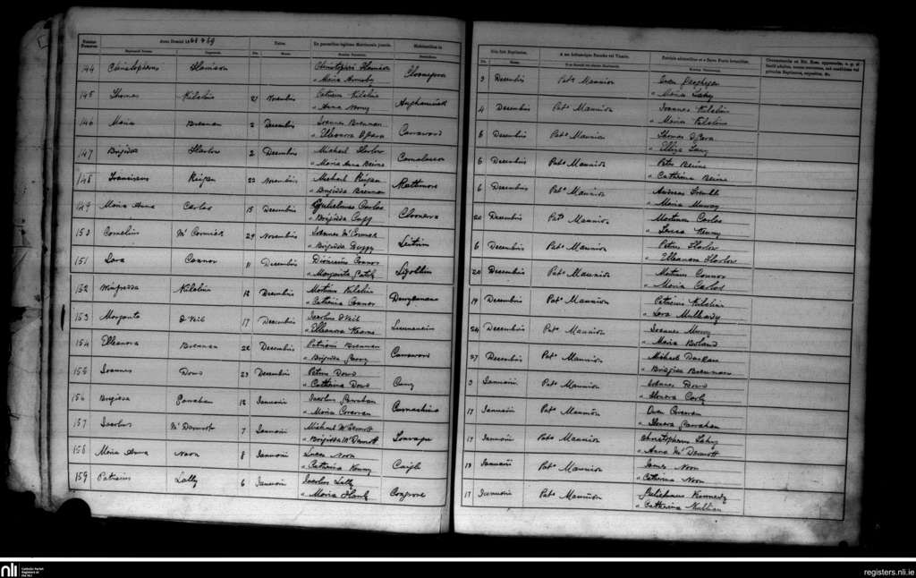 Kilbride; County of Roscommon; Diocese of Elphin. Baptisms, Dec. 1868 to Jan. 1869
