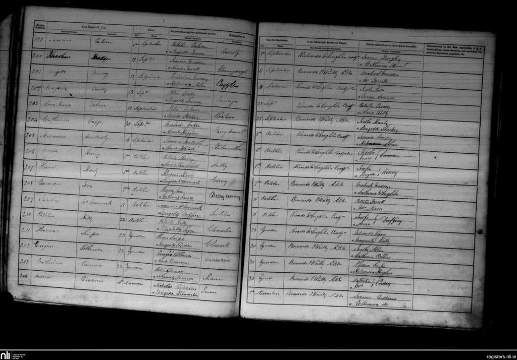 Kilbride; County of Roscommon; Diocese of Elphin. Baptisms, Sep. 1870 to Nov. 1870