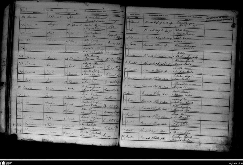 Kilbride; County of Roscommon; Diocese of Elphin. Baptisms, Feb. 1871 to Mar. 1871