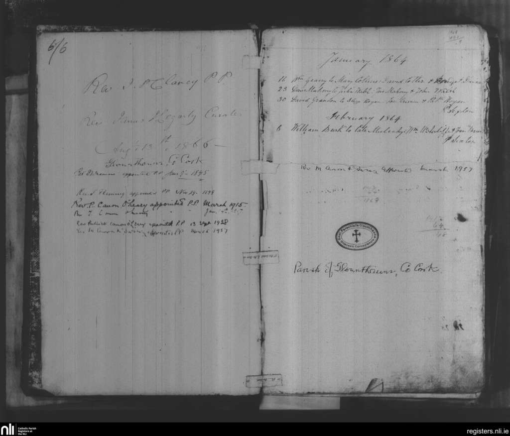 Glounthane; County of Cork; Diocese of Cork and Ross. Baptisms, Jan. 1864 to Feb. 1864