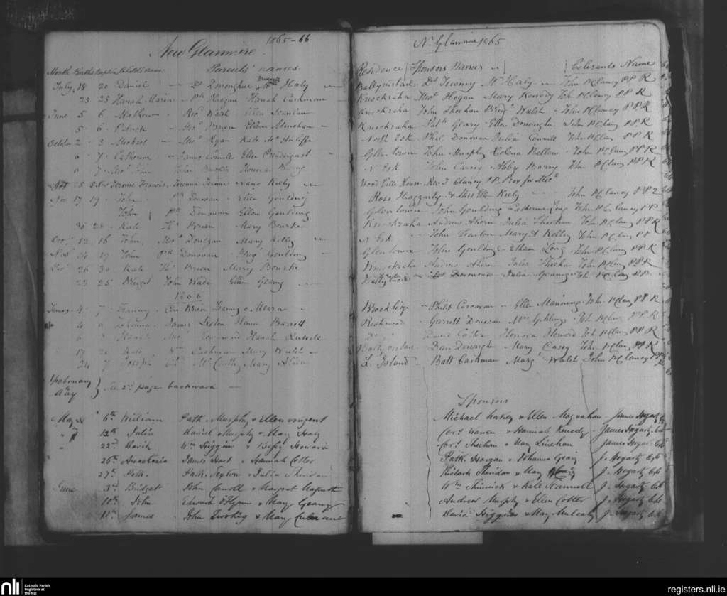 Glounthane; County of Cork; Diocese of Cork and Ross. Baptisms, June 1865 to June 1866