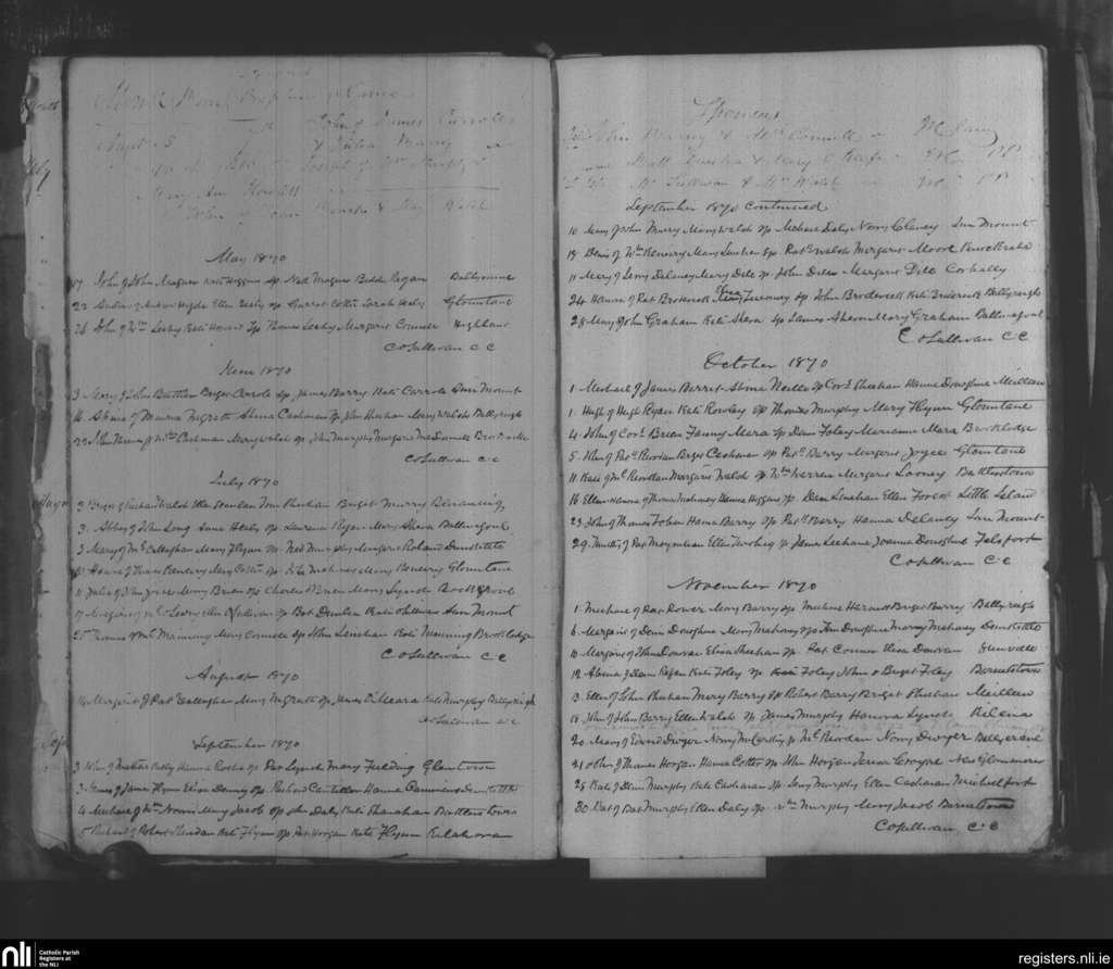 Glounthane; County of Cork; Diocese of Cork and Ross. Baptisms, May 1870 to Nov. 1870