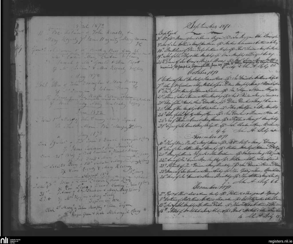 Glounthane; County of Cork; Diocese of Cork and Ross. Baptisms, Sep. 1871 to Aug. 1872