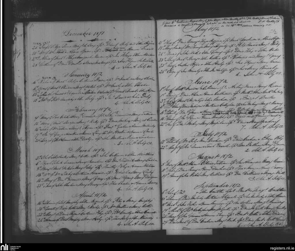 Glounthane; County of Cork; Diocese of Cork and Ross. Baptisms, Dec. 1871 to Sep. 1872