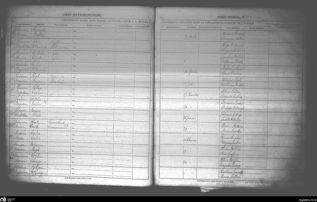 Geevagh; County of Sligo; Diocese of Elphin. Marriages, Mar. 1851 to Feb. 1852