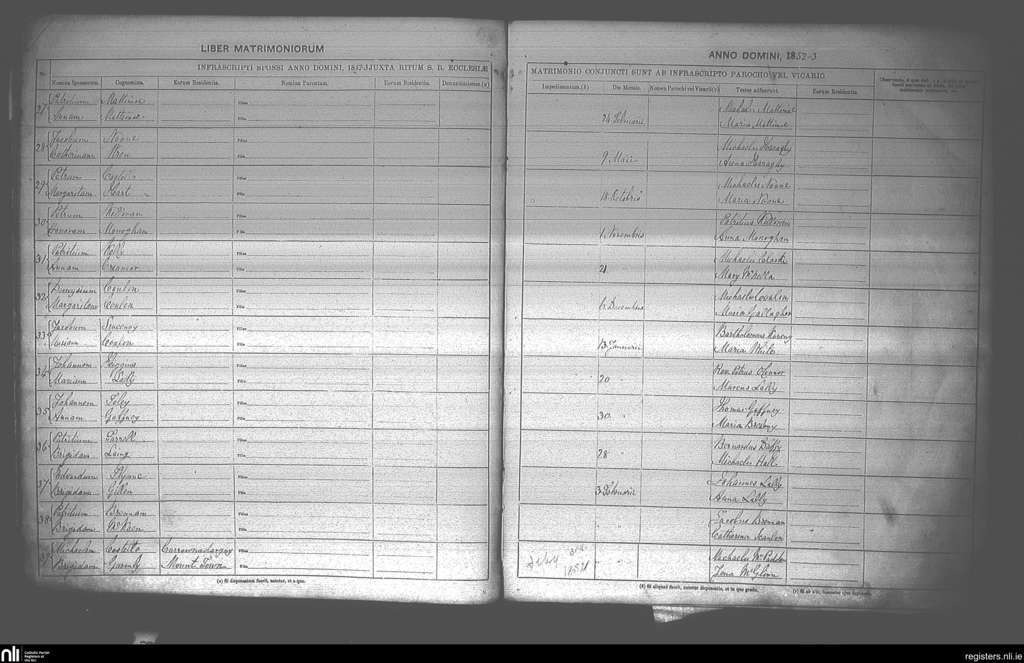Geevagh; County of Sligo; Diocese of Elphin. Marriages, Feb. 1852 to Feb. 1853