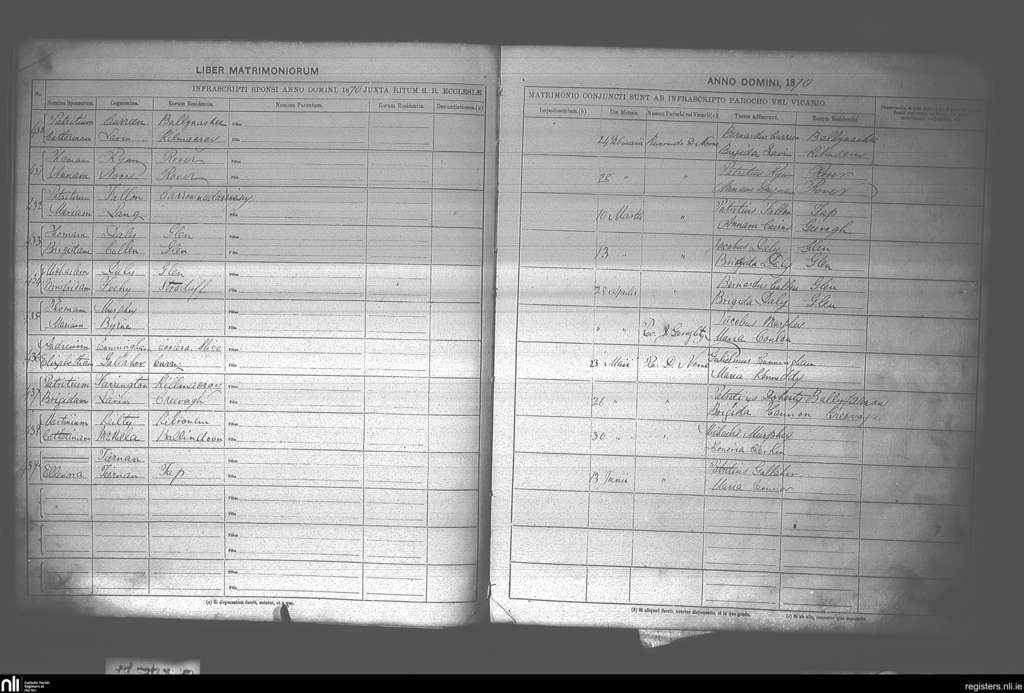 Geevagh; County of Sligo; Diocese of Elphin. Marriages, Feb. 1870 to June 1870