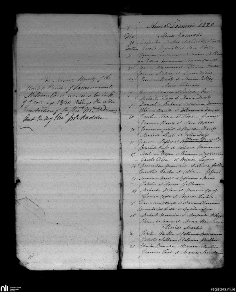 Roscommon and Kilteevan; County of Roscommon; Diocese of Elphin. Marriages, Jan. 1820 to Mar. 1820