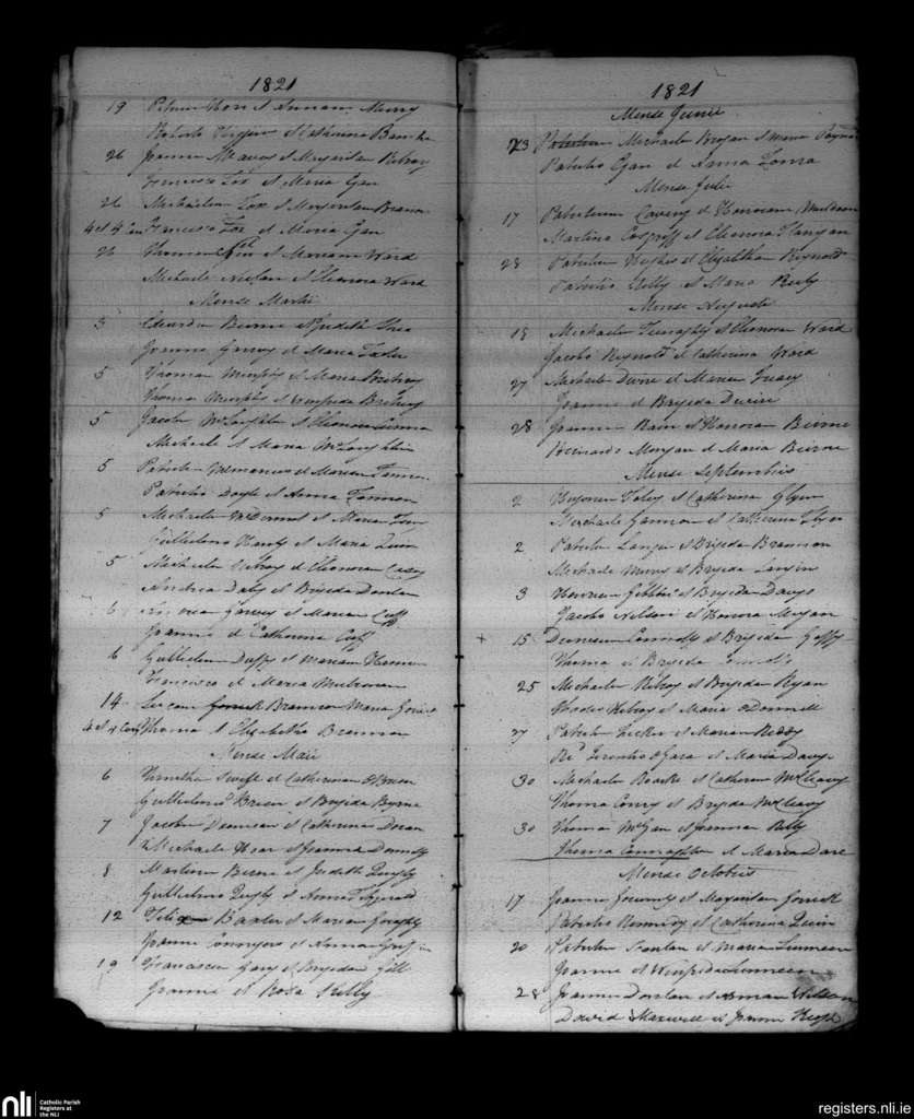 Roscommon and Kilteevan; County of Roscommon; Diocese of Elphin. Marriages, Feb. 1821 to Oct. 1821
