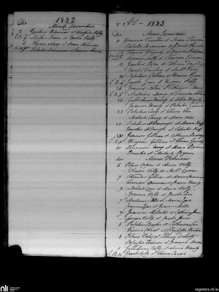 Roscommon and Kilteevan; County of Roscommon; Diocese of Elphin. Marriages, Dec. 1832 to Feb. 1833
