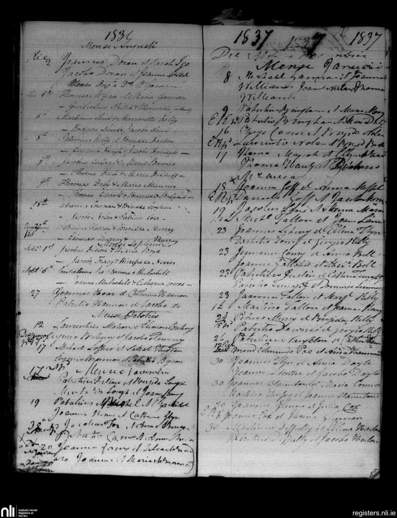 Roscommon and Kilteevan; County of Roscommon; Diocese of Elphin. Marriages, Aug. 1836 to Jan. 1837